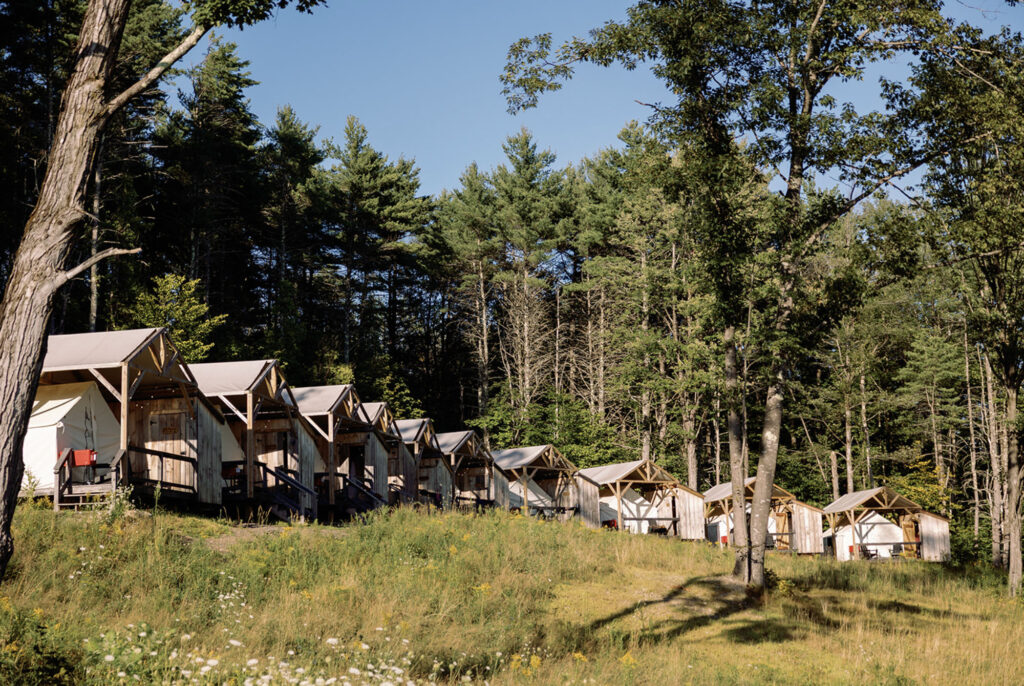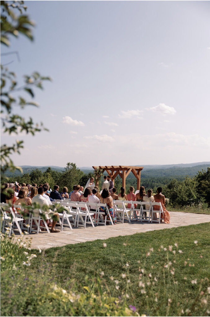 They offer overnight lodging for up to 40 of the couple’s family and friends, so Izzy and Josh had their close friends and family come beforehand and stay on-site. Their guests had the option to stay in cozy wood cabins or glamping yurts in the tranquil New Hampshire forest.