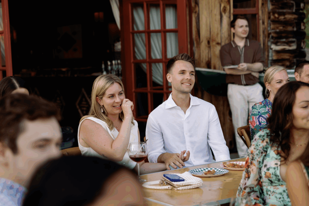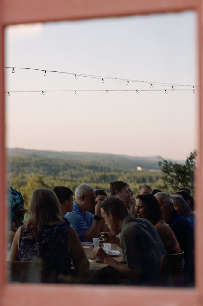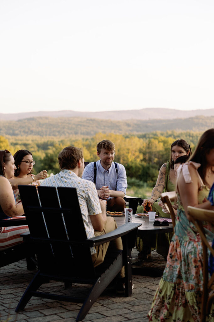 They had an intimate outdoor dinner where speeches were made, gourmet pizza and drinks were served, and it ended up being the best way to spend time all together in a beautiful outdoor setting before the rustic wedding even took place.