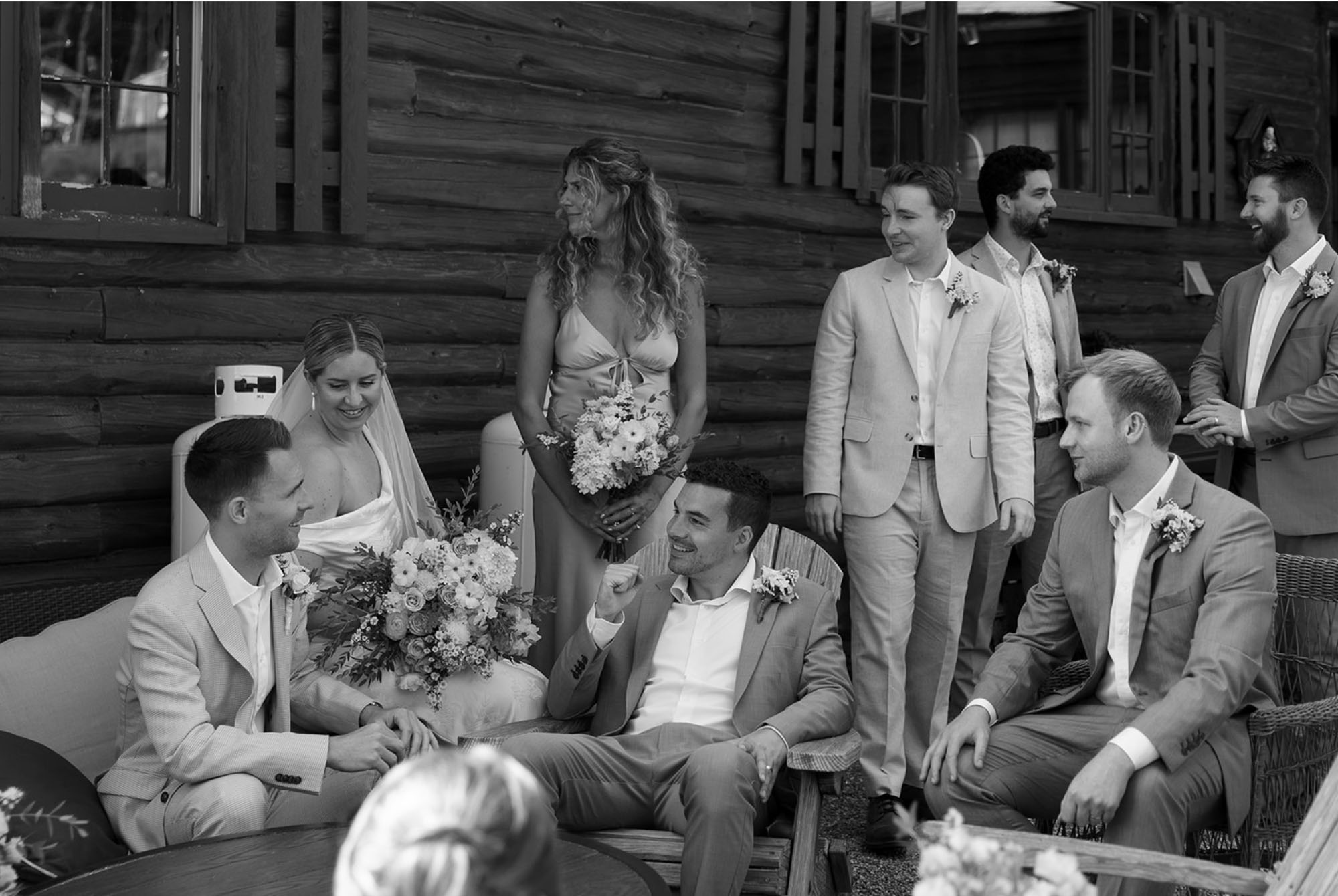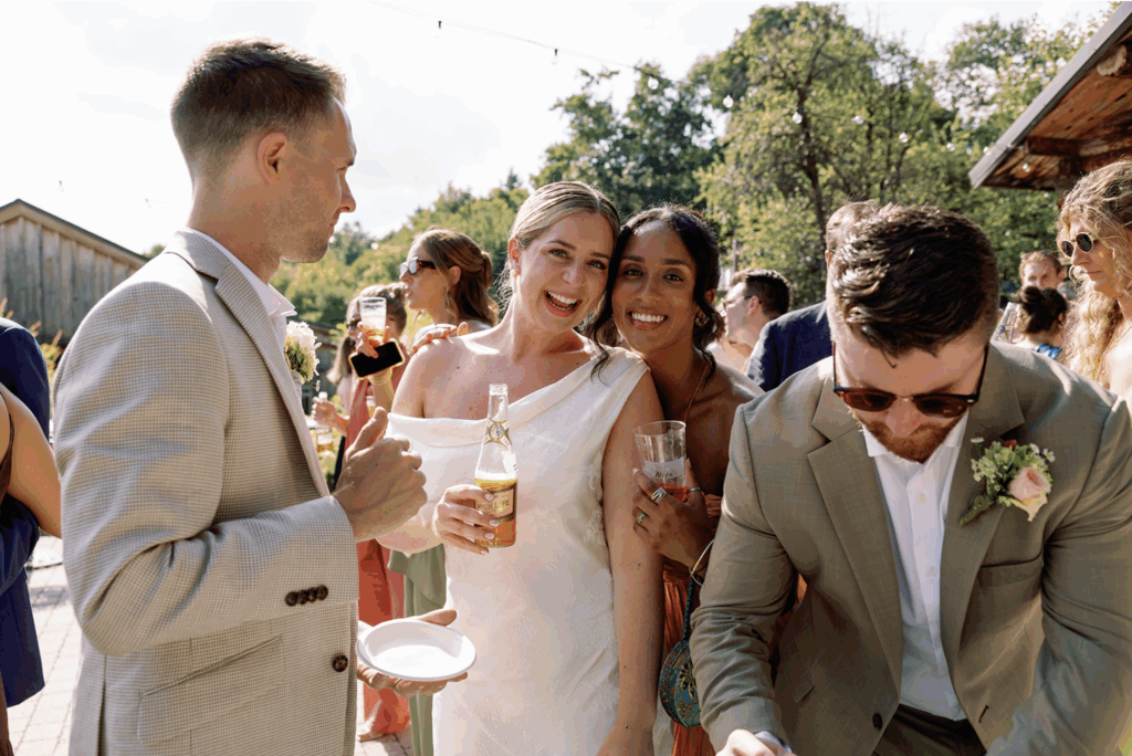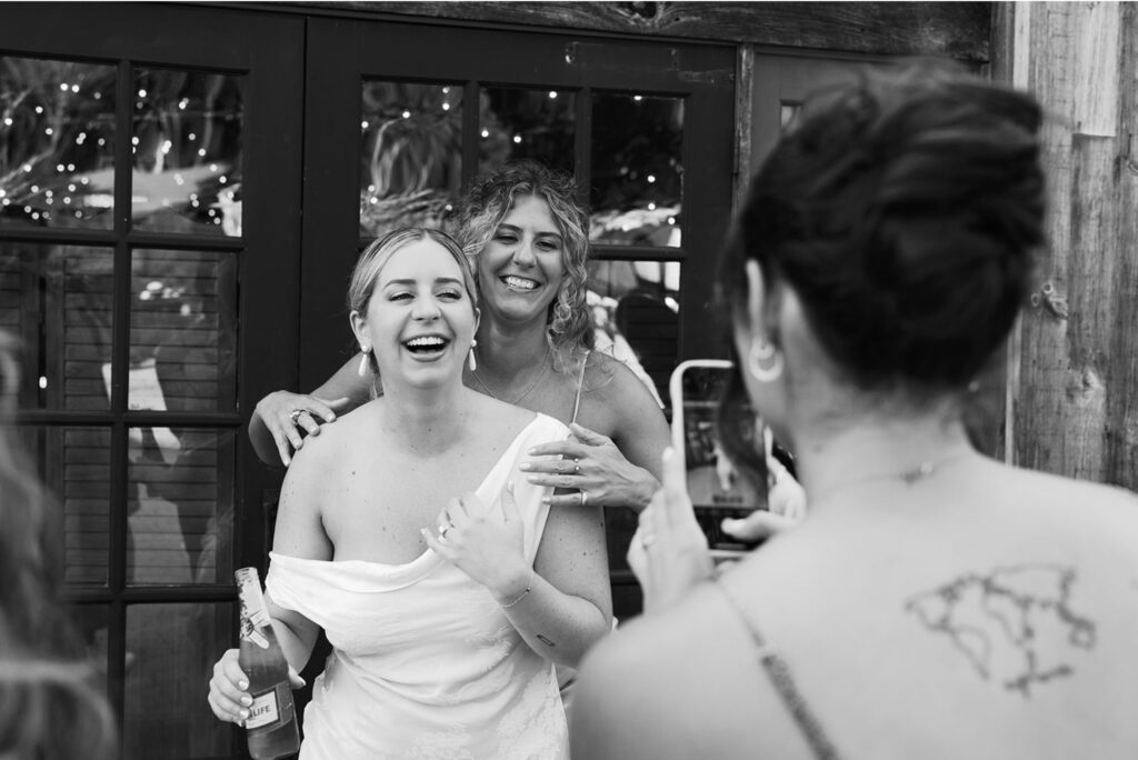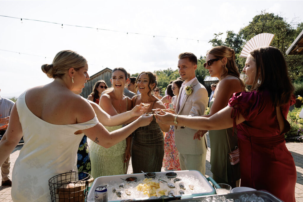 Everyone transitioned into cocktail hour laughing and smiling and ready to party while Izzy kicked off her pink shoes, enjoyed a Miller High Life, and took pictures with Josh and their friends and family!
