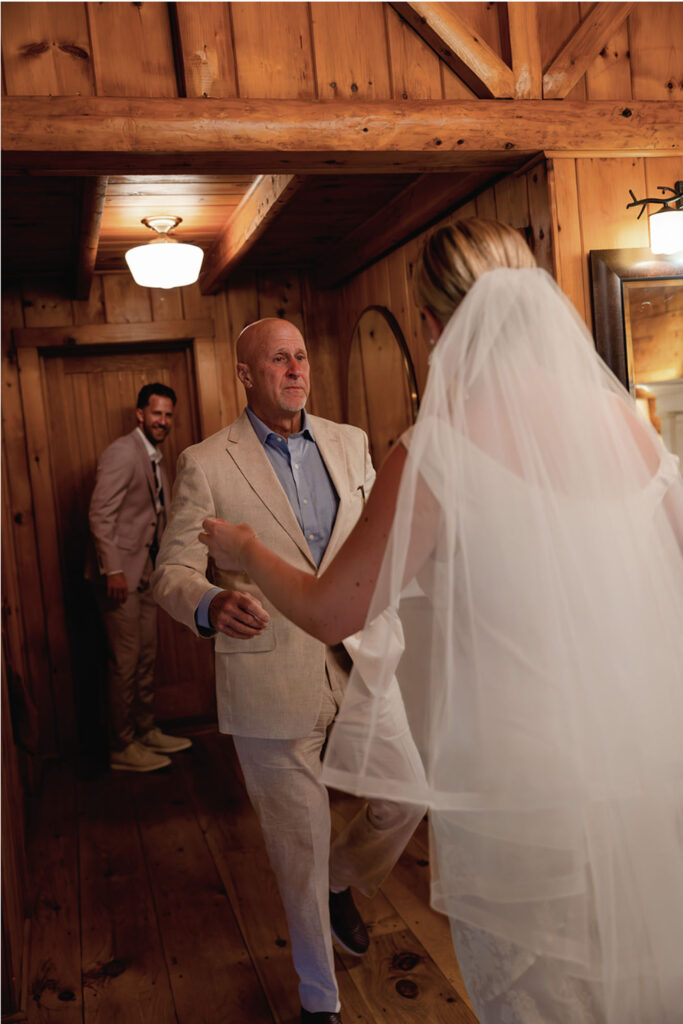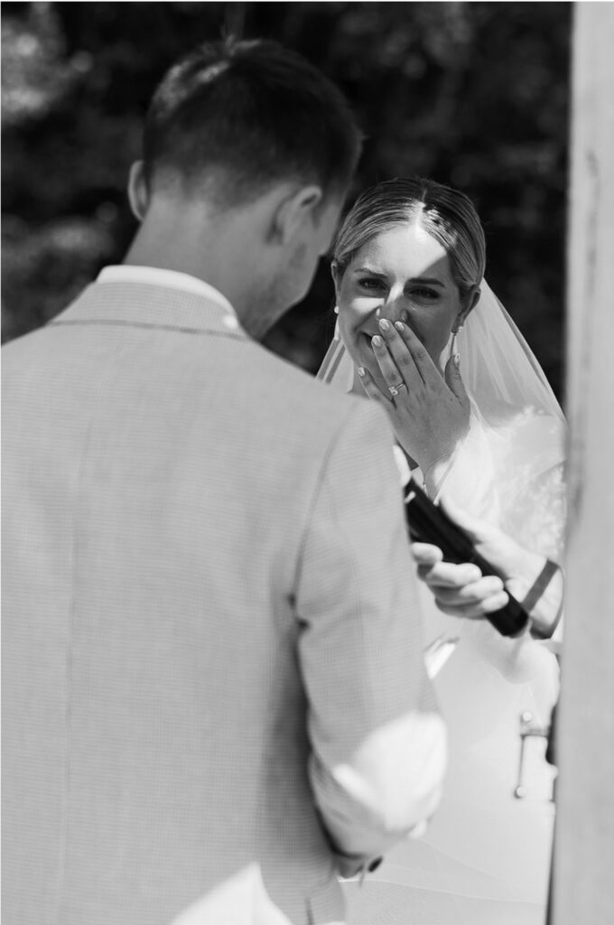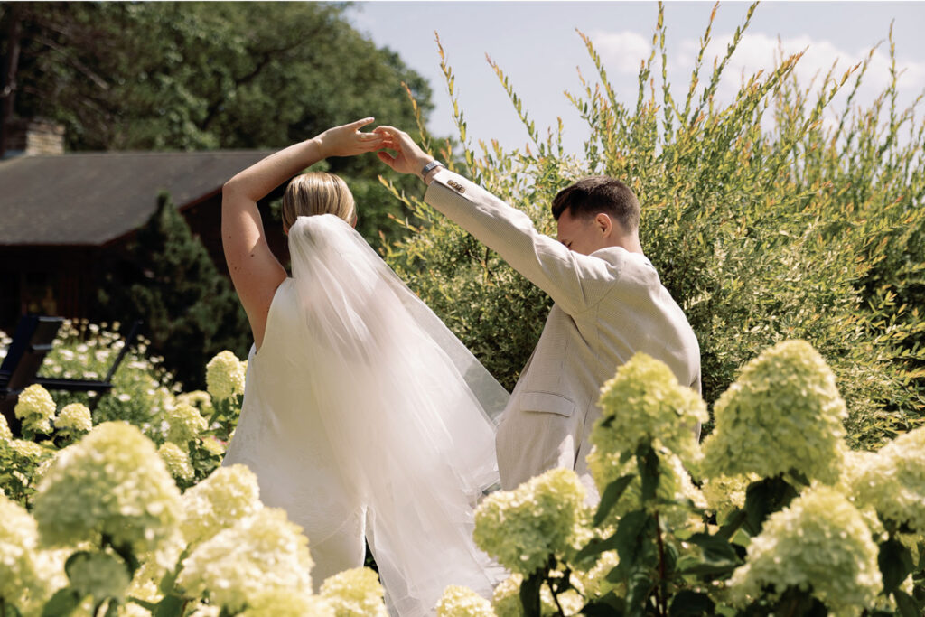 She did her first look with her dad inside the main house, then came out to do her first look with Josh outside in the sunshine. Their first moment together was absolute perfection, framed by clouds of white hydrangeas and the stunning New England scenery behind them. Josh was beaming when Izzy came out, and he twirled her around before pulling her in close for a kiss. So romantic!