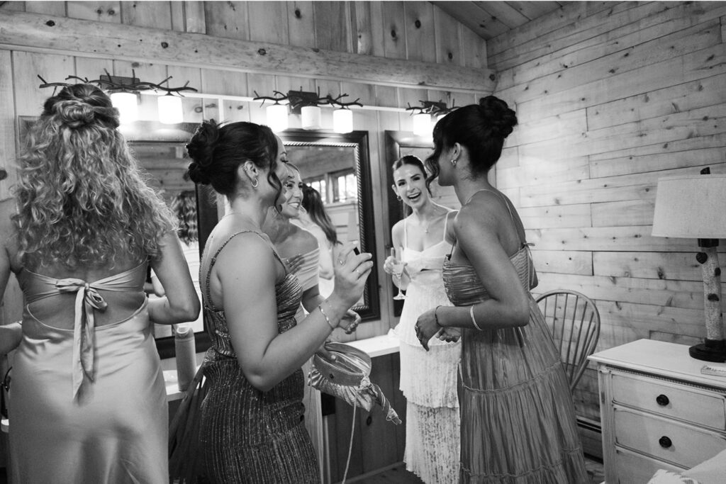 The ladies got ready together inside the Longlook Farm wedding party suite while the boys had too much fun at the whiskey barrel bar (as they should)!